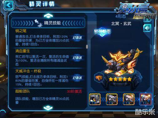 在《赛尔号超级英雄》中,玄武属于地面系精灵,完美克制火系、机械系、电系精灵,能造成更多的伤害。从精灵的基础属性上可以看出,玄武的生存、辅助能力都比其他普通精灵要强很多。