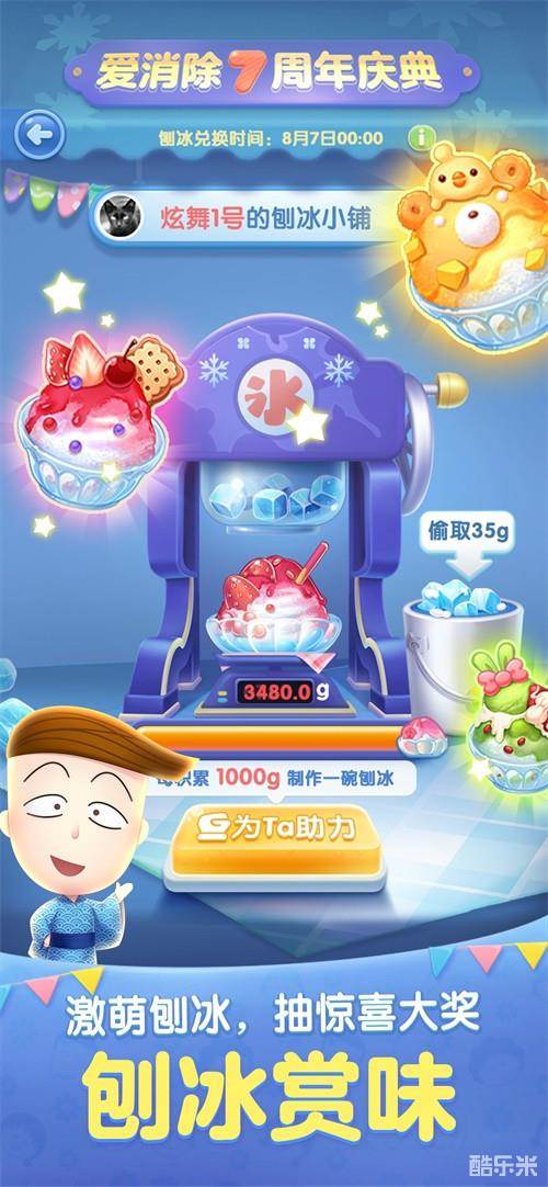 登录游戏或给好友助力,即可获得刨冰重量,而且还可以偷取好友的刨冰重量~8月7号起,集齐一定数量的刨冰,即有机会抽取樱桃小丸子专属月亮宠!轻轻松松拥有樱桃小丸子月亮宠,绝对是回馈给玩家的诚意满满大福利噢!