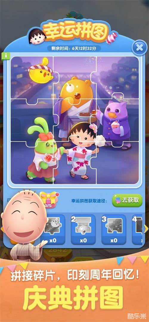 樱桃小丸子主题的拼图挑战也即将开始!专为樱桃小丸子定制的拼图绘画,萌力十足,童趣满满,快快收集碎片!集齐拼图碎片,印刻周年回忆~拼图完成后即有机会收到樱桃小丸子的大礼哦!