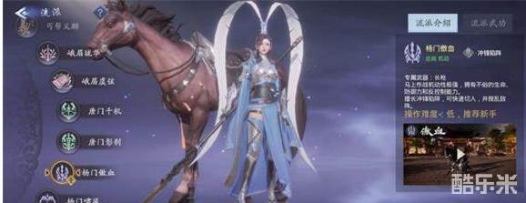 绝技:碧月飞星枪,杨门绝技,范围伤害型技能,可移动释放,无消耗,冷却时间60秒,只能在马上施展。施展后移动速度提高,回避控制效果提高,特殊招式可以使敌人封招。