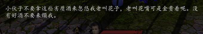 我们在潇隐村的路边可以找到乞丐对话,发现他需要喝酒,如果我们随便买一瓶酒给他,他会嫌弃。