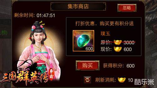 1、集市商店:人民安居乐业,市场繁荣。玩家进入集市商店,可购买相关道具。另外可花费10元宝刷新商品,商品只能购买1次,购买后不能刷新。