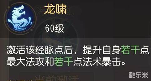 1.龙啸:提升自身若干点最大法攻和若干点法术暴击。具体增益,最大法攻:40/60/80;法术暴击:20/30/40。