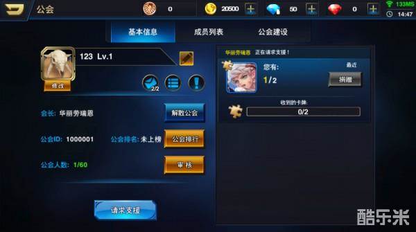 公会内含各种功能,比如公会大厅,玩家每日可以请求支援,即请求公会内其他玩家提供某英雄的卡牌碎片。