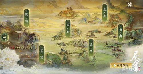 无论现实或游戏世界,传统写实风的地图往往更加常见。而《庆余年》作为一部杂糅了现代元素的“非典型”古风作品,在本次放出的“江山志”H5以及游戏内的地图中都对传统的做法进行了改变和创新。这种独特的工笔山水画风格,用意形兼备的方式展现了《庆余年》世界的全貌,同时不仅是对经典文化的一种传承,也是对武侠江湖独有意韵的巧妙体现。