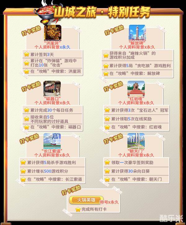活动期间,探索山城,完成特别任务,打卡重庆景点,赢取纪念礼物吧!
