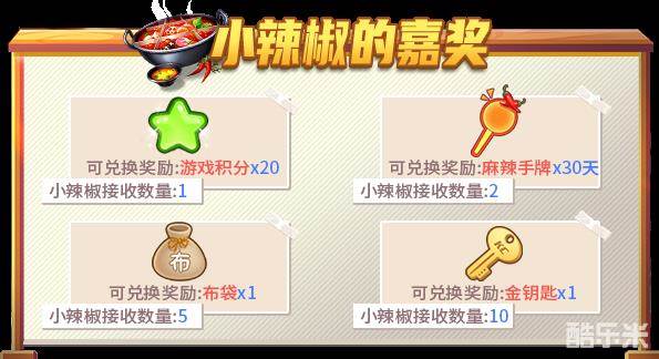 接收小辣椒,可不限次数兑换指定奖励,并消耗小辣椒的接收数量。
