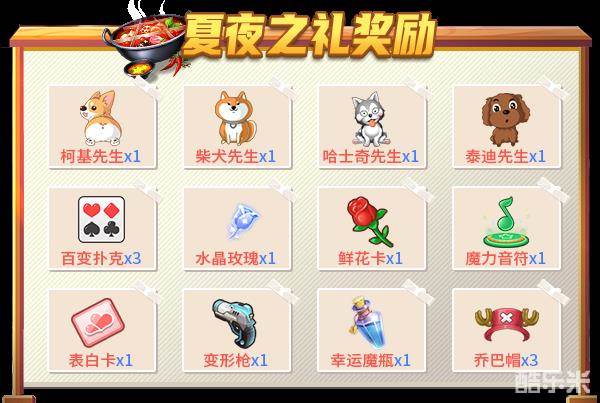 活动期间,魔法翻牌限时新增以下物品:板牙拖车登场动画、狮子座发言框、幻境之翼、飞舞、金盾、银盾、金项链、银项链、金手套、银手套、鸡你太美、猪猪帽、星光短裤、个性裙、宠物·伦特猫、星系光环、全新翅膀·蜂语。