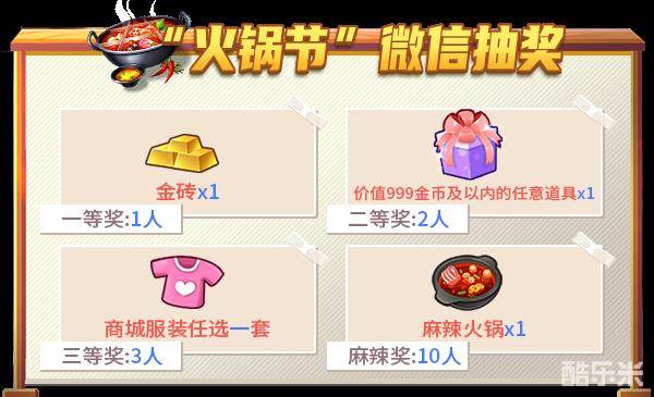 活动期间,关注《推理学院》官方微信公众号(微信公众号搜索:推理学院游戏官方),回复“火锅节”即可领取一份礼包码!并且,点击下方小程序参与抽奖,在活动结束后,由“抽奖小助手”随机抽取数位玩家,赠送金砖等特别礼物!