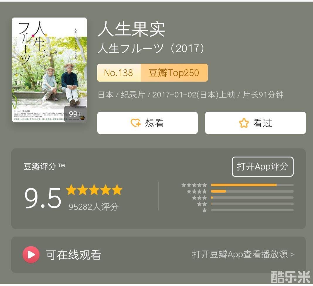 2.日本记录片《人生果实》豆瓣评分9.5分