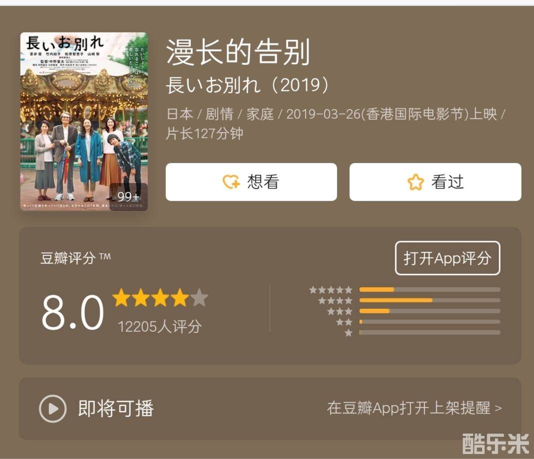 3.日本电影《漫长的告别》豆瓣评分8.0家庭片