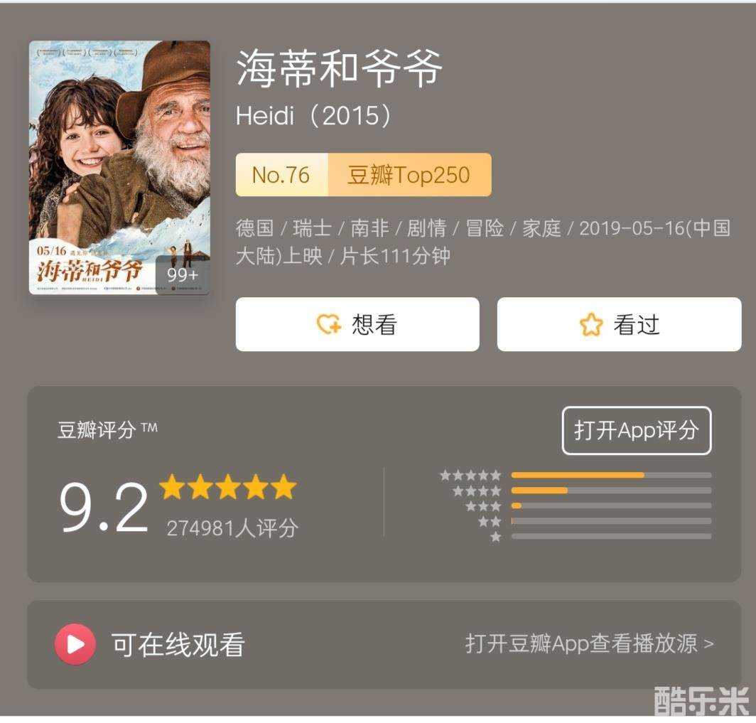 7.电影《海蒂和爷爷》豆瓣评分9.2分 德国超治愈家庭片