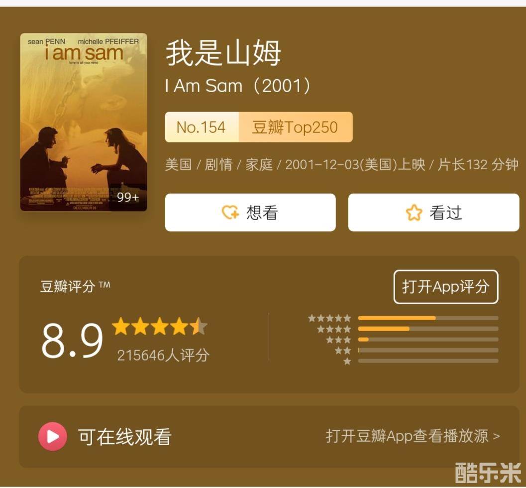 9.电影《我是山姆》豆瓣评分8.9分 美国