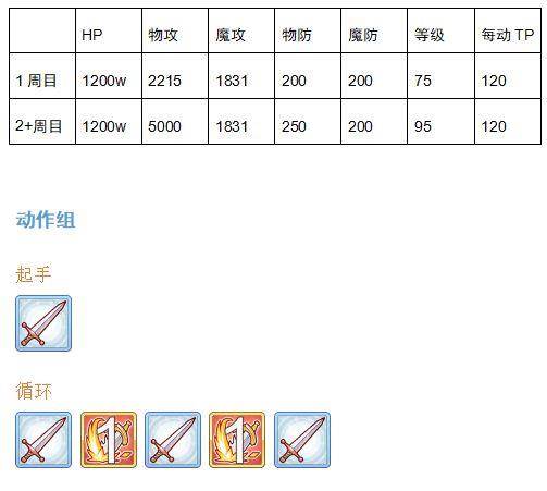 机制(2+周目):对最前方的【3】个敌人造成【13.5+13.5*lv+3.2*atk】=【16958】的物理伤害,并使受到伤害的目标晕眩【3】秒。