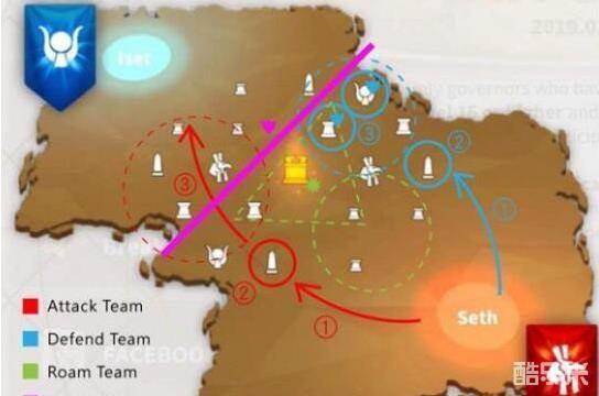 地图分为上中下路,那么意味着至少需要分成上中下三组,在双方战力,武将接近的情况下,三路都想取得优势是非常困难的,因此主流的战术思想在于防守一路不丢建筑,在有余力的情况下进行骚扰,而不是一味的冲击,中路则囤积重兵,争取对棺材的控制,而另一个边路则保持集结,甚至控制对方的神庙与建筑。