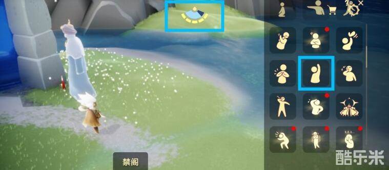 和招手先祖兑换获得该动作后,就是站在好友面前使用招手动作。先点击中上方的光之翼,然后选择招手动作即可完成