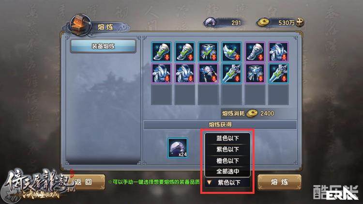 而除了这些烦人的副本之外,独门兵器系统当中也新增了自动聚魂功能,效率更高。装备熔炼中可以提前一键设置好想要熔炼的装备品质,不仅为玩家提供了便利,还可以防止粗心的小伙伴一个没看清熔错装备~简直贴心!