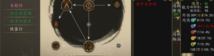 接下来就是最主要的豪侠线入门方法,在新手村找到孟启,他会让我们接下三招就收我们为徒,这个方法其实很简单,我们需要把我们的移动值堆到3,就可以轻松过关了,如果开局没有选择移动值+1的天赋那么我们就需要堆轻功值,大概到100左右就可以移动3格了,这时候我们就可以轻易的躲过孟启的三次攻击完成任务。