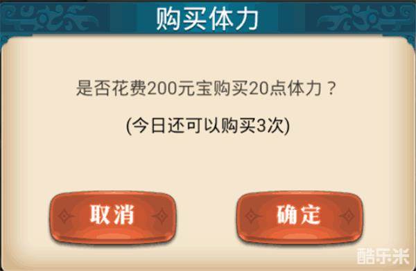 购买体力也是为了扫荡副本,每次购买可以获得20点体力,每点体力可以扫荡一次副本,第2-3次每次需要50元宝,第4-6次每次需要100元宝,第7-10次每次需要200元宝,后面在购买每次需要400元宝。