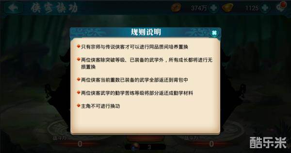 对于同品质的侠客,可以通过换功进行培养置换,但是这里小编要提醒的有两点: