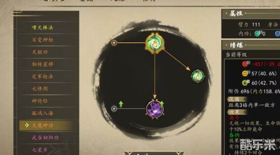 唐门支线:做完吴不知的支线剧情后去唐门大殿对话唐新触发剧情,然后去洛城白马寺对话冷霜寒,然后再对话一次,然后会得到弹月(橙色暗器装备)以及孔雀翎图谱,之后去大地图左上角的风楼打一架,再点凤楼解开寒泉,最后回唐门。