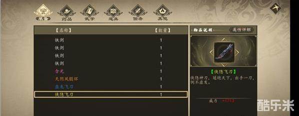 7.隐侠飞刀(蓉城文殊院中间房子 进门需内力100)