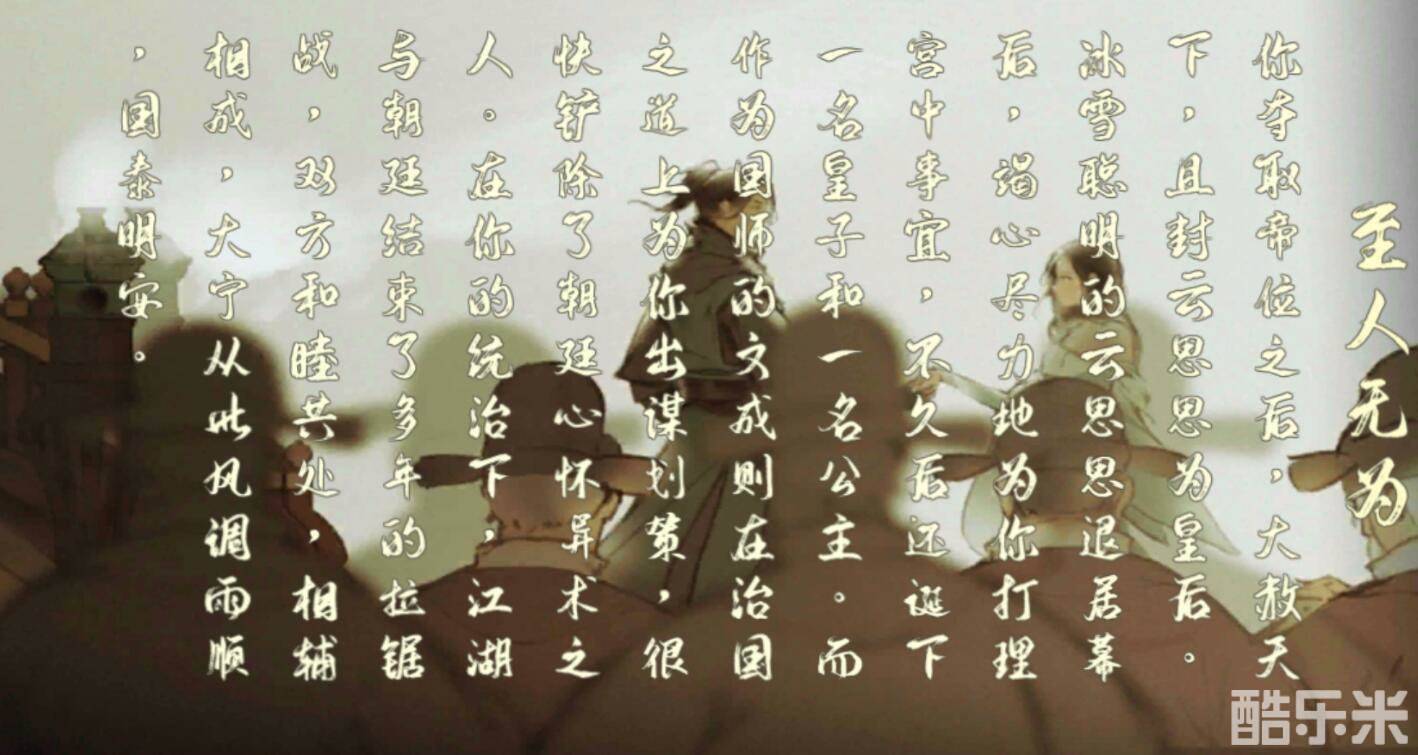 云思思达成的结局为至人无为,我们在夺权之后,云思思便会成为我们的皇后。