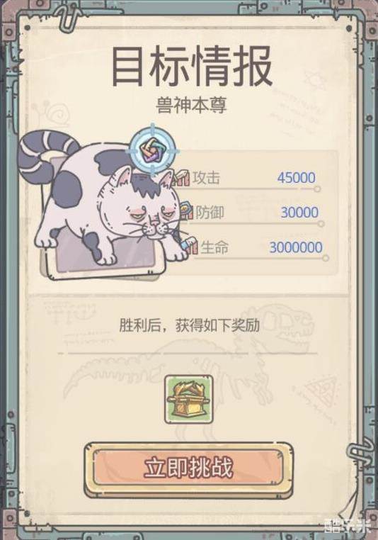 超大号肉球的效果是对兽神造成3倍的伤害,在超大号肉球的帮助下我们战力只要不是太低都是可以打败兽神本尊的。
