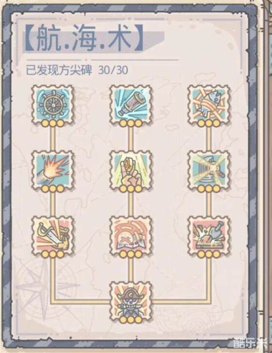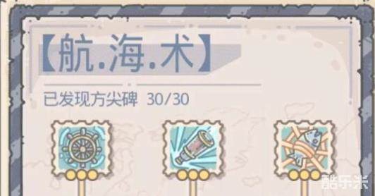 在游戏中一共有10种航海术,每种可以提升3次等级,合计需要我们遇到30次方尖碑。