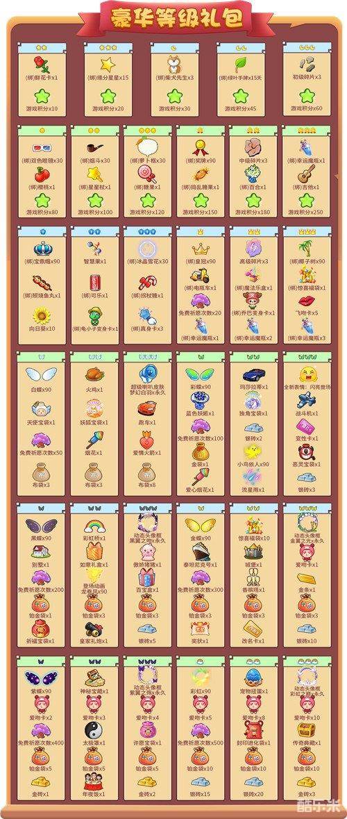 经过粗略的计算:一位皇冠玩家;可以抱走49份不同礼物!一位彩蝶玩家,可以抱走76份不同礼物!一位紫蝶玩家,可以抱走121份不同礼物!而站在彩虹之巅的男人,甚至还能额外领走金砖、传奇典藏,宠物扭蛋、封印进化袋等超超超超稀有奖励