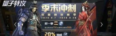 七夕之约浪漫到来之际,《量子特攻》“假面刺客”赛季也迎来尾声。即日起至8月20日,“季末冲刺”活动火爆进行中,漫游者们都能享受到20%赛季任务经验加成的特权、赛季通行证等级提升更轻松!此外,还有专属任务送上额外赛季点、赛季等级买一送一等多种加速助力,让你能在最后一周时间里快速提升赛季通行证等级,把“霸王”“虞姬”等赛季专属奖励一个不落全部带回家!