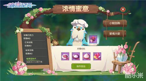 “甜蜜时节”当然少不了甜甜的美食。在「浓情蜜意」玩法中,大家能用材料制作出浓情巧克力、芒果班戟、鲜果甜筒、蜜意蛋糕杯等美味甜品,大快朵颐喔!活动将分为两个阶段,围绕准备和制作节日甜品展开。8月20日开始,大家可以通过组队玩法「小贼别跑」和单人玩法「爱情大使」,筹集制作甜品需要的可可粉、糖霜、奶油等基础材料,并完成对应甜品制作。等到9月3日5点整,全新蜜意蛋糕杯就将开售,请海民们准备好让馨香精美的甜品蛋糕打开你的味蕾吧!