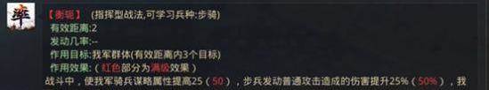 蔡文姬的自带战法奶量十分可观,缺点主动战法是不太稳定。作为2c武将其各项属性加成有限,有条件的话可以考虑购买500虎符的+0.5cost特性。战法方面,由于用周泰替代了汉董卓,队伍前期缺乏群体减伤类战法,因此可以选择避其锋芒,提高队伍前期的生存能力,第二个战法笔者选择了控制类型,可以根据战法剩余情况选择妖术、当阳桥等,有效距离为4无法控到对方大营的问题可以由蔡文姬的兵种解决—弓骑兵,自身所有战法距离+1.
