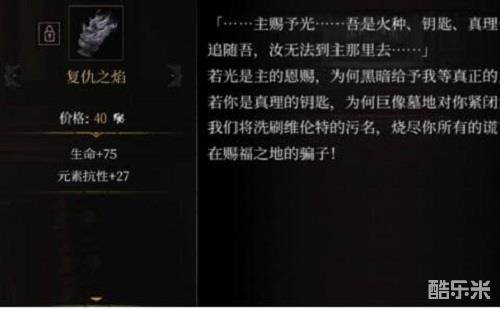 拿到这两个材料之后就可以通过合成机制制作成复仇之焰了,穿上后可以增加75点生命值以及27点元素抗性。
