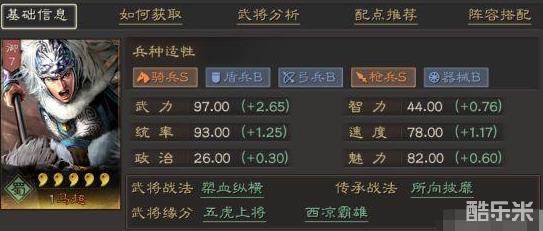 兵种适性上,枪骑S,枪骑是暴力队的主打兵种,马超不需要再有什么抱怨了。盾弓可以不理会。