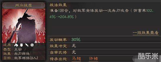 西凉霸雄:战斗前2回合,使我军全体获得必中并提升16武力