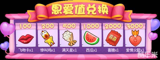 除此之外,您还可使用恩爱值限时兑换奖励!兑换之后扣除对应恩爱值,但不会影响“甜蜜排行榜”的排名。