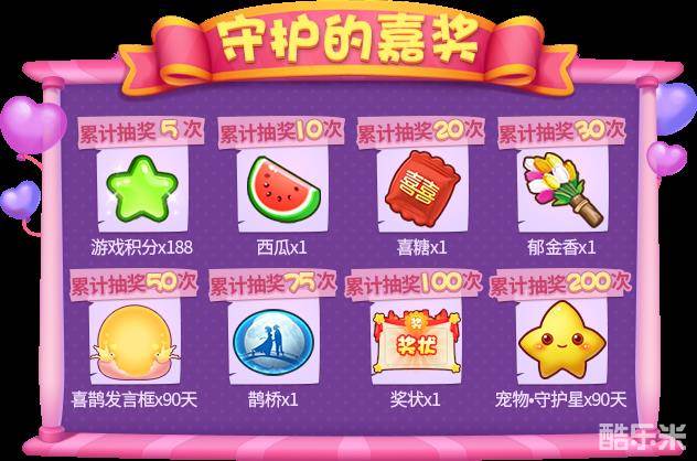 每局累计获得4份奖励:额外随机赠送一份:流星雨、鹊桥、爱情火箭