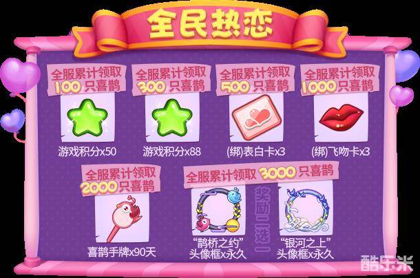 1. 在活动期间至少领取过1只“喜鹊”的玩家,才可领取“全民热恋”奖励;