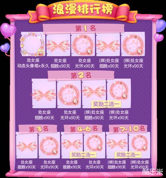 2. “浪漫排行榜”奖励将在活动结束后1个工作日内发放。