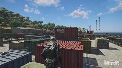 接下来是东北的港口,这里遍布刚运抵小岛的物资箱,玩家需要通过攀爬和跳跃穿梭在集装箱之上,去寻找物资。