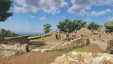 而整片区域巨大的遗迹,结构同样非常不规则,昔日辉煌的斗技场只剩下残垣断壁,高大的墙壁带来了移动的障碍,需要攀爬才能到达各处有资源的地点。