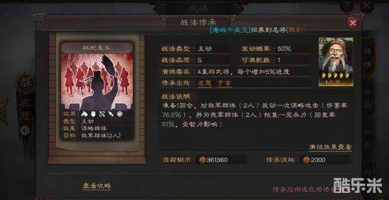 能够使我军全体前2回合获得规避效果,3/4/5回合获得休整状态,是非常强大的全体续航类战法。拥有左慈的队伍有着非常强大的抗伤害能力和恢复能力,能够抗住敌方前期的输出并且保持较高的兵力。并且,左慈拥有仙人的标签,能够在战斗中获得30%的全属性加成,从而弥补兵种的劣势,是一个能够搭配大多数武将阵容的万金油强力辅助。