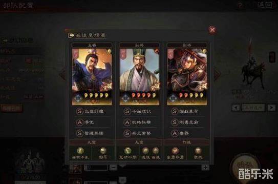 曹操主将、程昱、乐进确定了,考虑到魏骑还要稳健的特性,接下来就是技能问题: