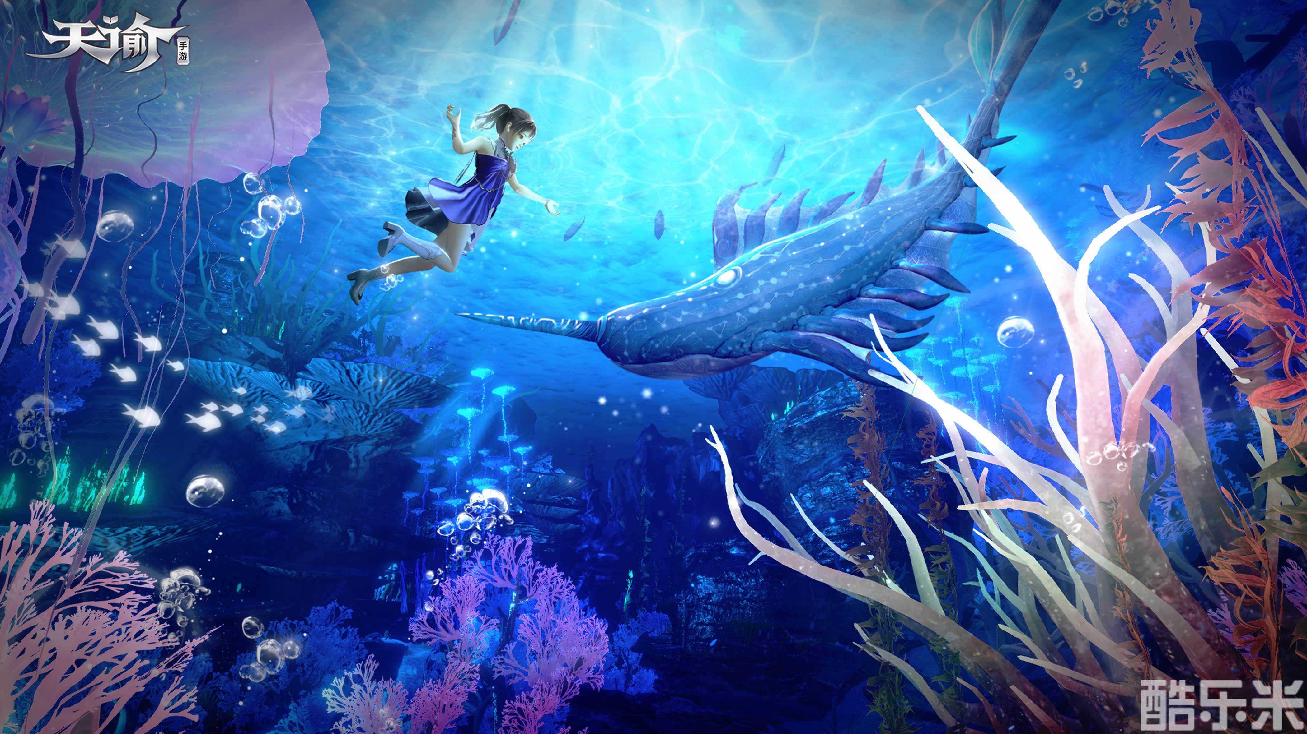 在云垂,上天入海,心所向往之处,冒险家们都可到达。插上翅膀就可上天飞翔,自在游览云垂大陆;而神秘绮丽的海底世界,也等待着冒险家们的探寻。幽光水母在深海巡游,多种鱼群随冒险家们畅游海底,还有30余种珊瑚组成的梦幻海景,散布在海底的神秘宝箱,壮观的千年沉船遗迹……在温泉回廊中观看玄鲸起舞,是独属于《天谕》手游的深海之梦。