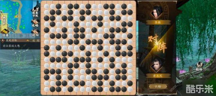玩家们在杭州城的东边找到灵隐寺,下面有一个小亭子就能下棋了,我们在下棋之前需要先对诗句,我们下棋落子无悔不能调整只能认输,对手是电脑并不是很困难,但是电脑只会堵不会攻。