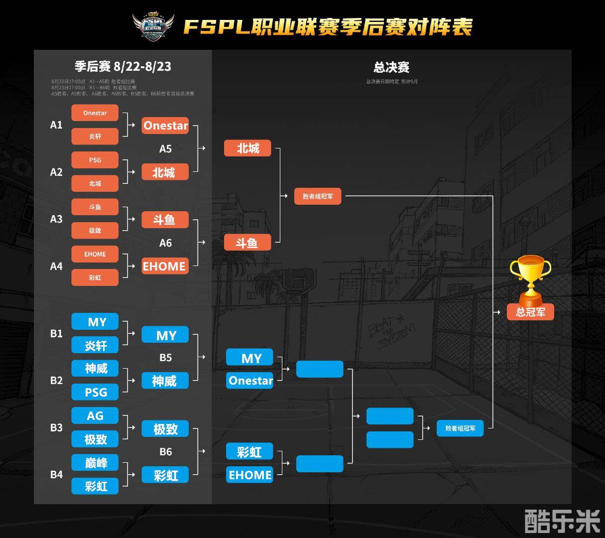 2020《街头篮球》FSPL职业联赛季后赛的比赛在上海长泰广场举办,12支职业战队集结,经过两天的激烈比赛最终Onestar、北城、斗鱼、EHOME、MY以及彩虹战队晋级FSPL总决赛,让我们一起了解下比赛详情。