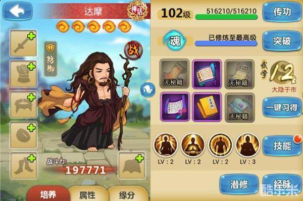 周年庆前夕,游戏内推出了第二名神话侠客——达摩祖师。身为防御侠客,达摩祖师的抗击打能力可不一般。他的主动技能不但能提供“减伤”Buff,还提升自身一定气血。被动一技能“立地成佛”在增加自身武力的同时还增加气血和防御,并且是以百分比的形式增加。而“金刚不坏”虽说是一个光环技能,但也不可否认其增加的防御属性也是实打实的。更何况达摩祖师的配缘属性中,67%的气血提升、44%的防御提升,还有18%的命中和20%的武力。这么计算下来达摩祖师的属性也确实够高。一个肉盾与输出的结合,是不少玩家的最爱