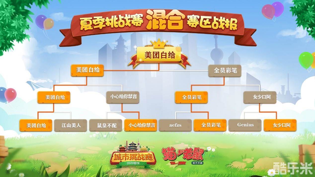 混合赛区共有32只战队参加本次海选赛进行角逐,经过精彩的较量后,美团白给获得冠军,全员彩笔、小心给你禁言收获了亚军与季军。