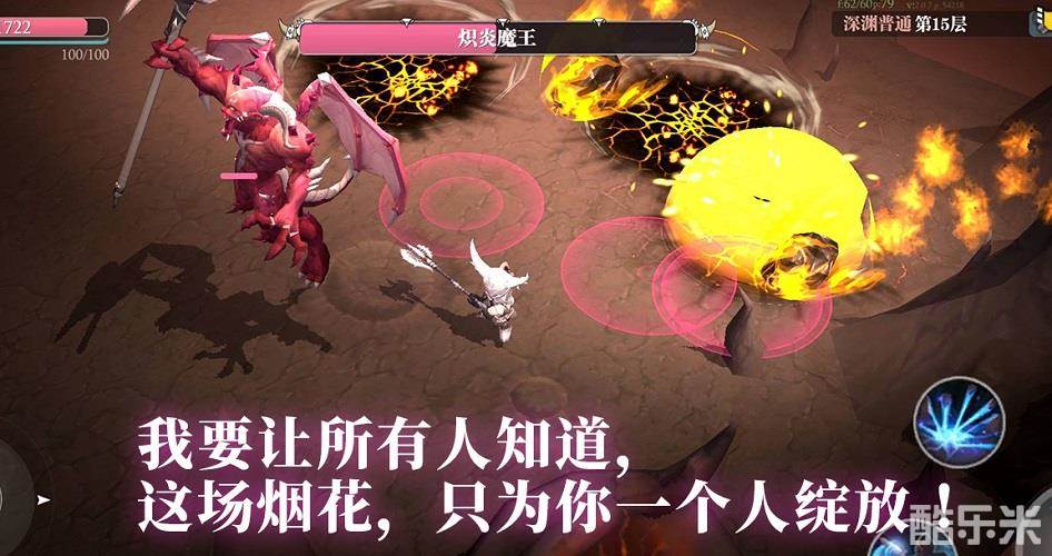 第15层的Boss炽炎魔王,向玩家表白“我要让所有人知道,这场烟花,只为你一个人绽放”。听上去有点“承包鱼塘”那味了,但这却是一场伴随伤害与死亡的烟花!炽炎魔王半血以后,每隔一段时间就会召唤陨石雨,观赏效果确实和烟花一样壮观,但千万不要傻乎乎地站在原地欣赏,否则等待你的就是被double